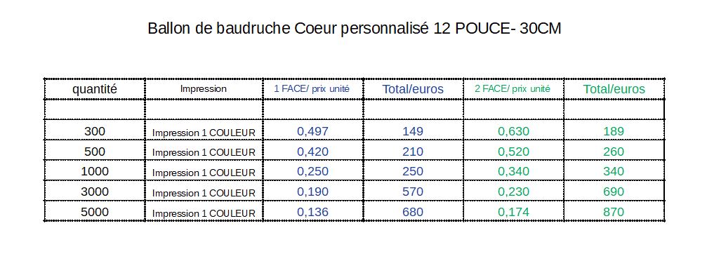 | Couleur ballon coeur | Blanc, Bleu clair, Jaune, Orange, Rose, Rouge, Ruby, Vert, Violet |