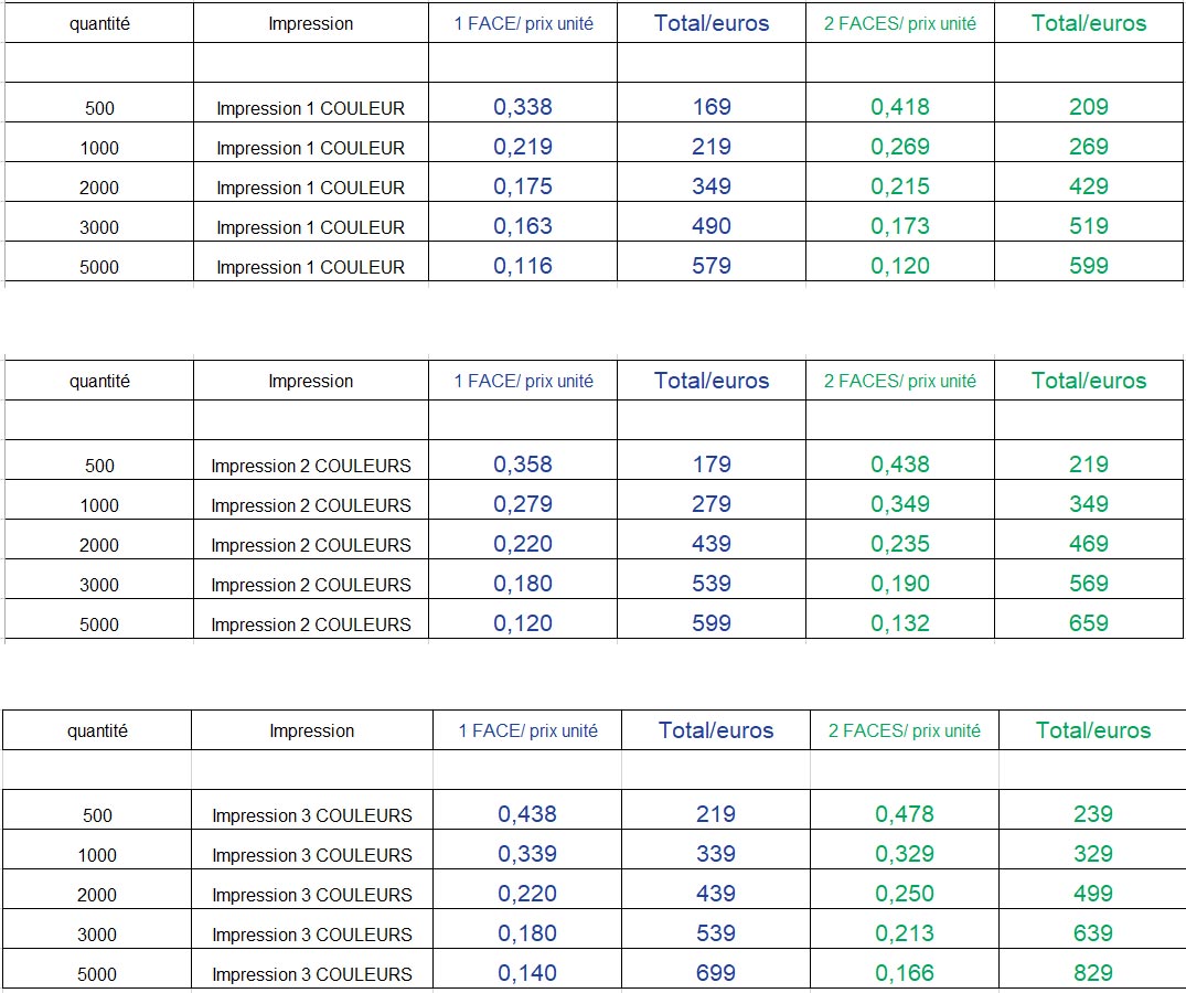 Impression sérigraphie 1,2 et 3 couleurs.